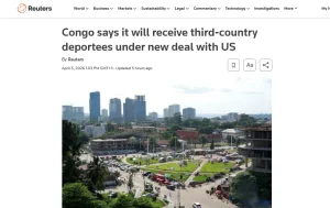Демократична Республіка Конго погодилася приймати іноземців, яких депортують зі Сполучених Штатів Америки, у рамках угод з адміністрацією президента Дональда Трампа.