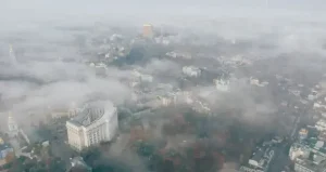 У лівобережних районах Києва внаслідок ворожих обстрілів 20 січня виникли пожежі, що призвело до утворення смогу над містом. Про це