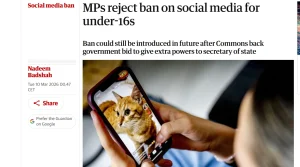 Палата громад Великої Британії відхилила законопроєкт, що пропонував тотальну заборону соціальних мереж для дітей віком до 16 років. Це відбулося з перевагою у 307 голосів проти 173.