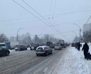 У самому Києві автомобілі буксують і не можуть піднятися на гору, дороги перетворились на ковзанку.