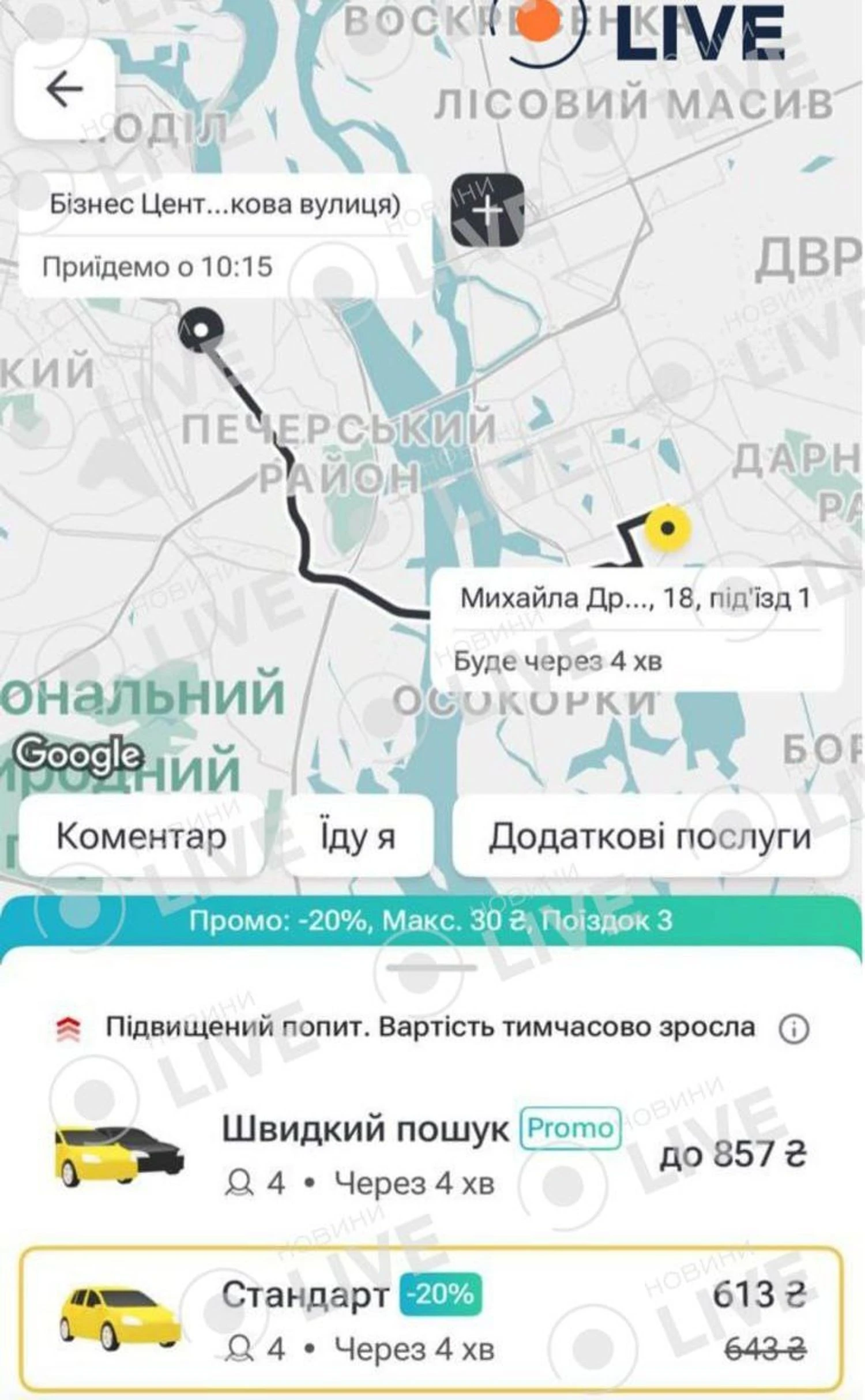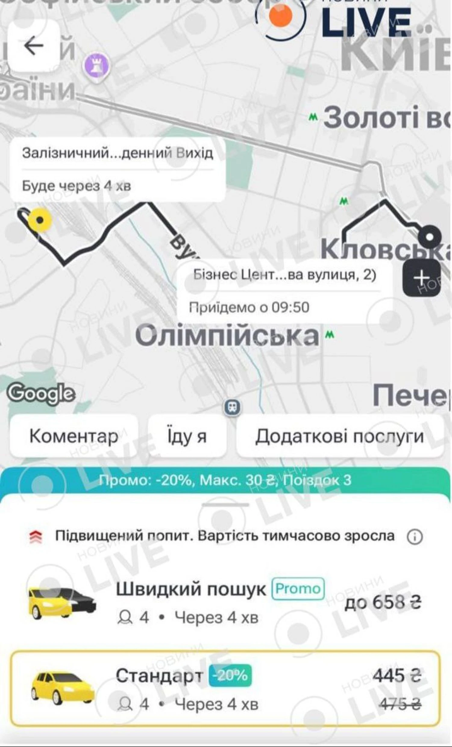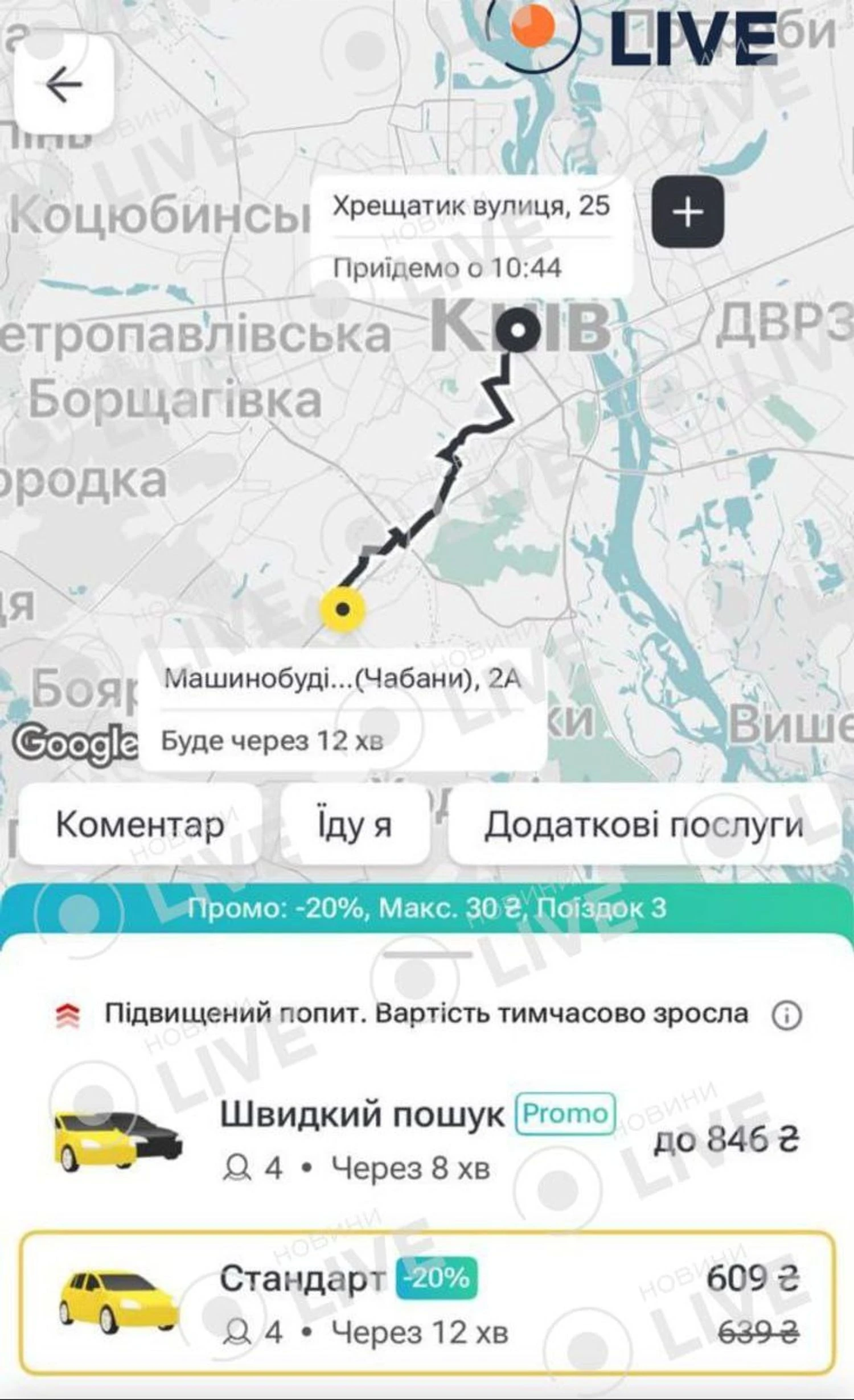 Також у столиці тарифи на таксі різко піднялись через негоду та ускладнений рух на дорогах.