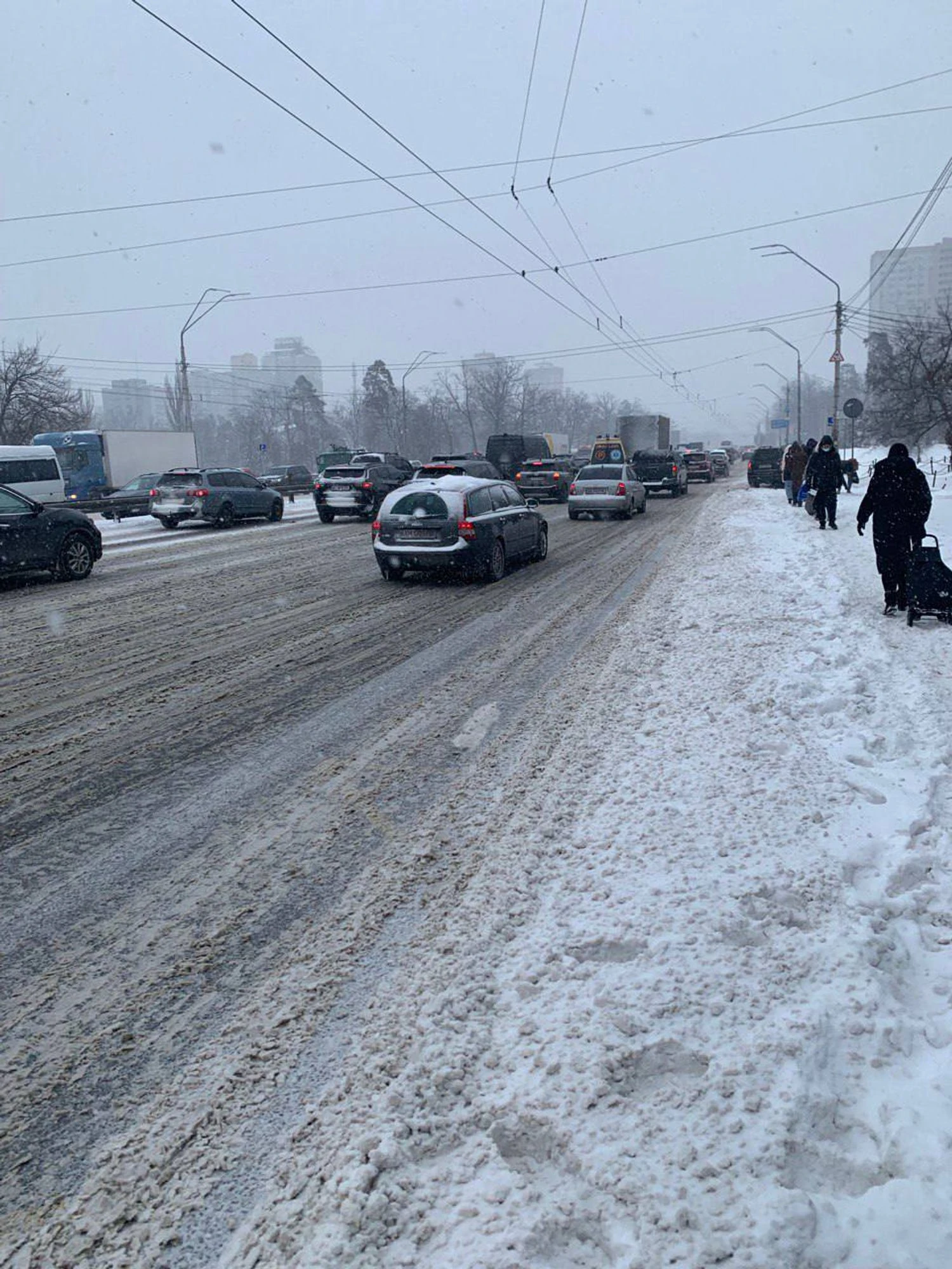 У Києві і Київській області через сильний снігопад 5 лютого буксують автомобілі. Через негоду і нерозчищені дороги місто та передмістя застрягли в заторах. Про це повідомляє столичні Telegram-канали.