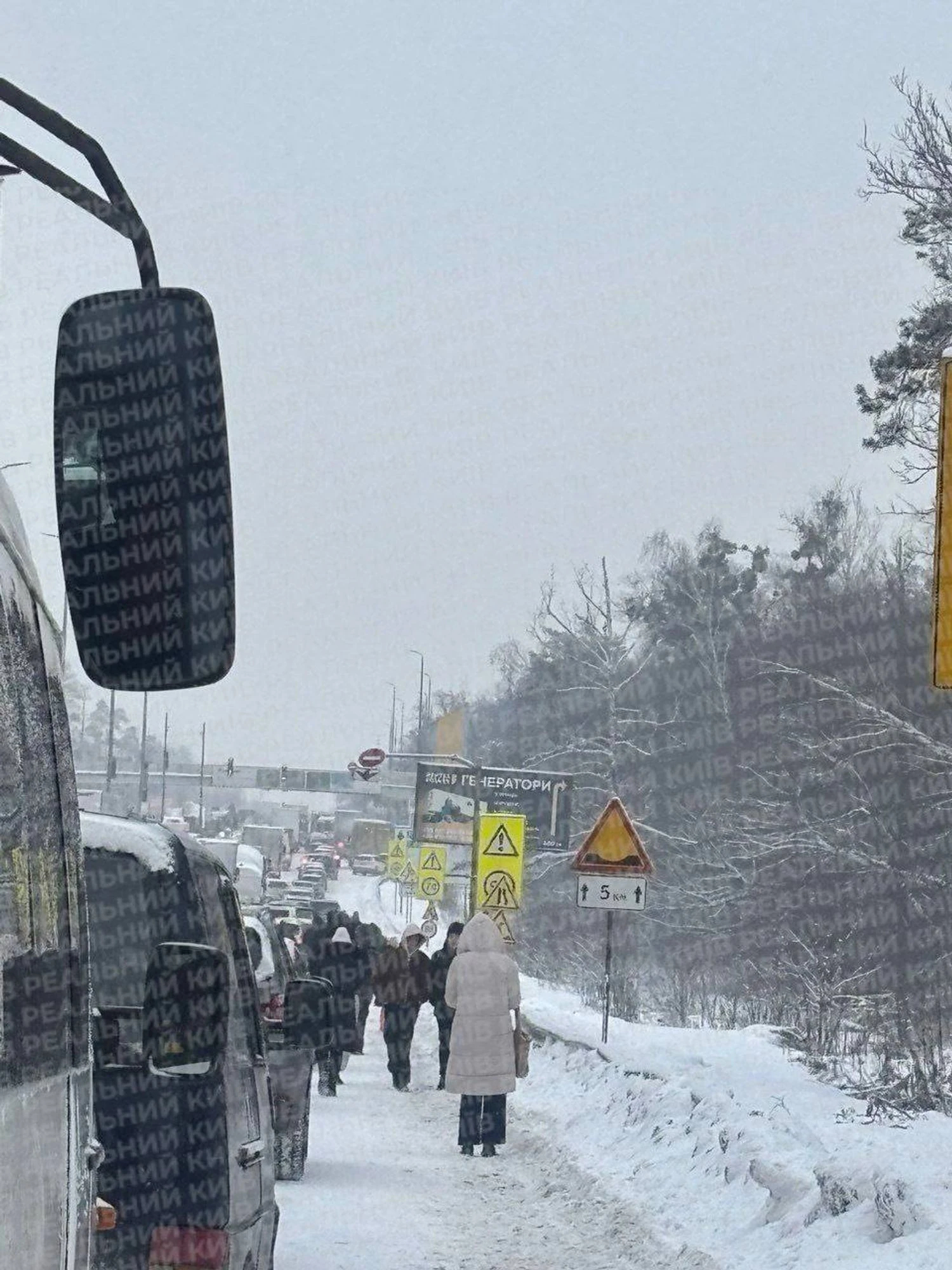 Автомобілі застрягли на Житомирській і Варшавській трасах від Бучі до Мощуна, а також на в’їзді до столиці з Одеської траси.