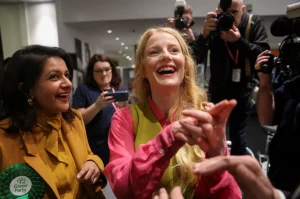 Лейбористська партія на чолі з прем’єром Кіром Стармером зазнала несподіваної поразки на виборах у виборчому окрузі Гортон та Дентон, де утримувала домінуючі позиції протягом майже століття. Представниця Партії зелених Ханна Спенсер святкує перемогу в цьому окрузі Великого Манчестера, що стало серйозним ударом по іміджу уряду, повідомляють новини Reuters.