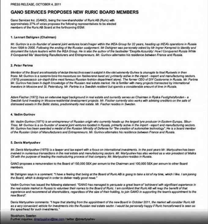 На брата Вадима Гурінова — Артема Гурінова — також був оформлений офшор GANO SERVICES INC. (Британські Віргінські острови). Через нього контролювалися 27% у шведському фонді RURIC, який пов’язували із закордонним контуром активів петербурзьких бізнесменів.