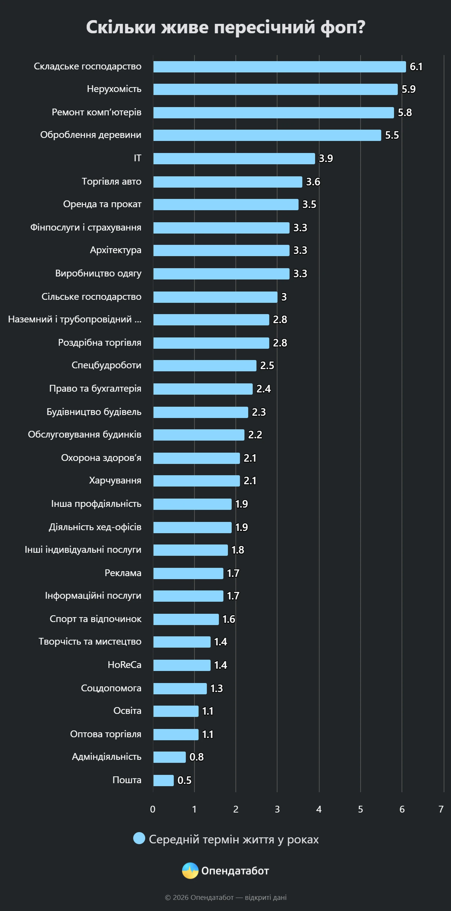 Довгожителями в Україні є ФОПи, що займаються складським господарством – більш ніж 6 років пропрацювали такі підприємці.