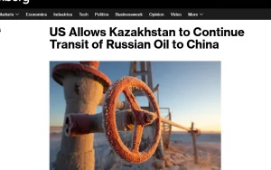 Адміністрація США продовжила дозвіл Казахстану на транзит російської нафти трубопроводом до Китаю до 19 березня 2027 року. Як повідомляє Bloomberg, посилаючись на Міністерство енергетики Казахстану, відповідну ліцензію видало Управління контролю за іноземними активами (OFAC) Міністерства фінансів США. Попередня угода була чинною до квітня 2026 року.