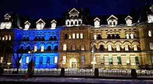 У столичному парламенті Канади в Оттаві, а також в офісі прем’єр-міністра, були підсвічені будівлі у синьо-жовті кольори на знак солідарності з Україною.
