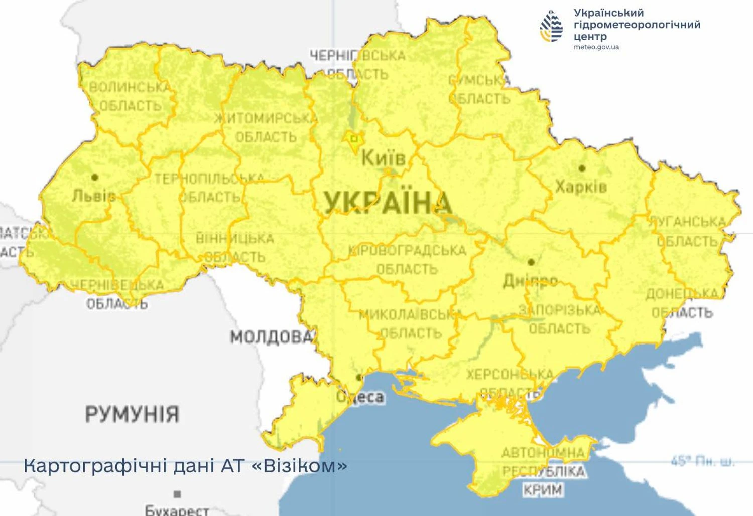 Водночас у неділю по всій території України очікується І рівень небезпечності, (жовтий).