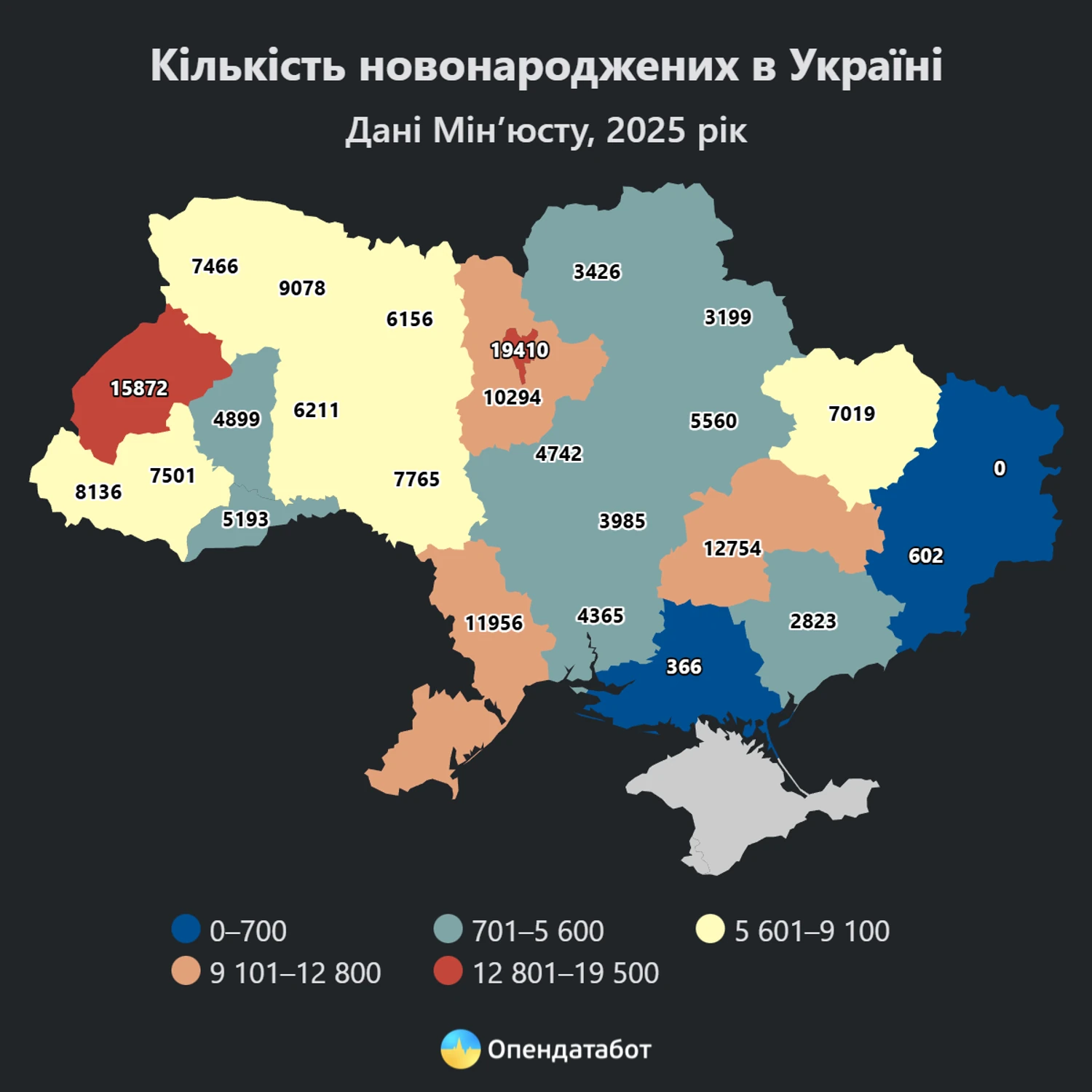 Водночас в Україні є регіони, які пішли в плюс за кількістю новонароджених. Так, у Львівській області народжуваність збільшилася на 1,5% – це на 230 немовлят більше, ніж у 2024 році. У Волинській області приріст склав 0,6%, або 44 дитини.