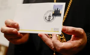 Поштова служба Ватикану анонсувала випуск нової марки, присвяченої Українській греко-католицькій церкві. Цей випуск став особливим, адже він містить глибокий соціальний підтекст. Основним елементом дизайну є київський собор Воскресіння Христового, зображений у темряві на фоні помаранчевого вечірнього неба під час відключення електроенергії.