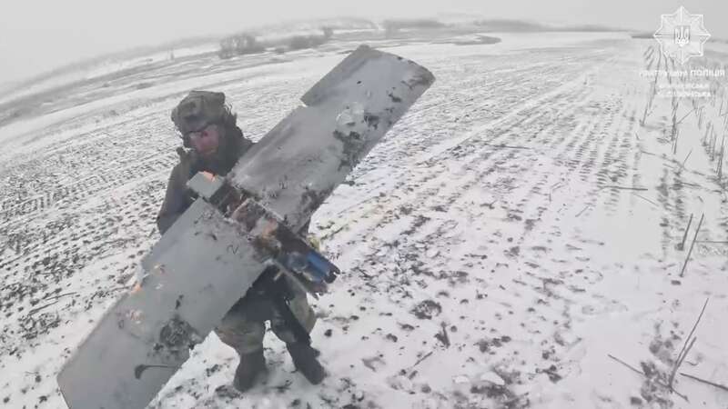 На них видно, як антидронова група патрульної поліції збила російський дрон “Молния” та ще один БпЛА невідомого типу. Обидва були “затрофеєні” та евакуйовані з місця падіння.